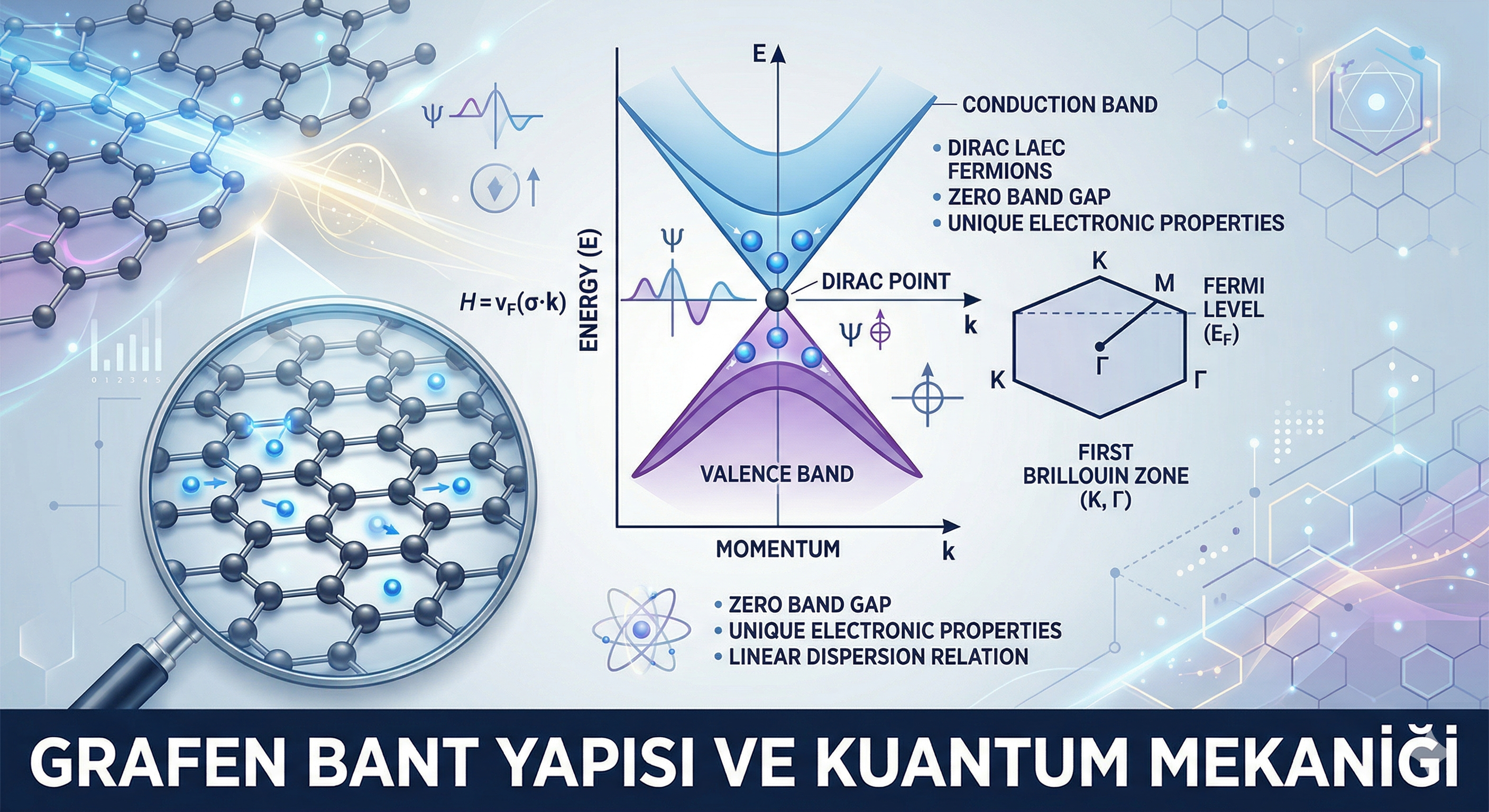 Teknoloji dünyasında “mucize malzeme” olarak adlandırılan grafen, sadece dayanıklılığıyla değil, kuantum mekaniği kurallarını makro dünyaya taşıyan benzersiz bant yapısıyla da bilim insanlarını büyülemeye devam ediyor. Peki, tek bir atom kalınlığındaki bu karbon tabakasını bu kadar özel kılan nedir? Gelin, kuantum fiziğinin derinliklerine ve grafenin enerji haritasına birlikte bakalım. Grafen Nedir? İki Boyutlu Bir Devrim Grafen, […]