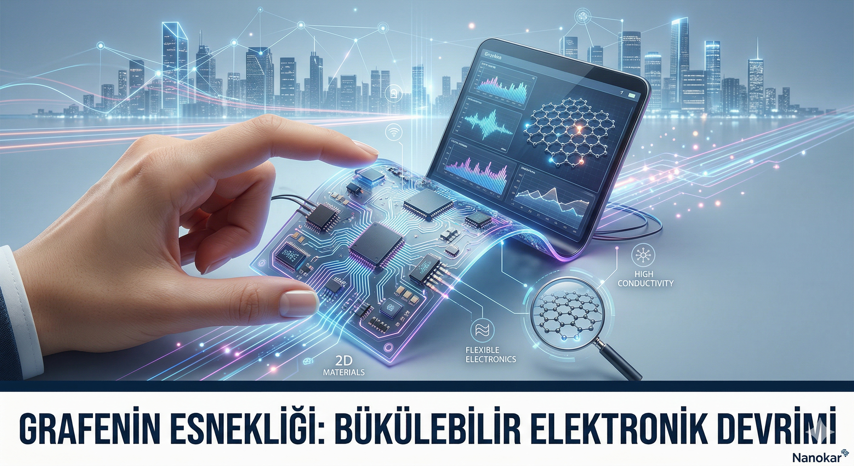 Teknoloji dünyası on yıllardır sert, kırılgan ve belirli kalıplara hapsolmuş cihazlarla çevriliydi. Ancak grafen, bu sınırları atomik düzeyde parçalıyor. Hem dünyanın en dayanıklı malzemesi olup hem de bir kağıt gibi bükülebilen bir yapı hayal edin. İşte bu, bükülebilir elektroniklerin (flexible electronics) ve giyilebilir teknolojinin başlangıç noktasıdır. Atomik Bir Yay: Grafen Neden Esnektir? Grafen, karbon atomlarının […]