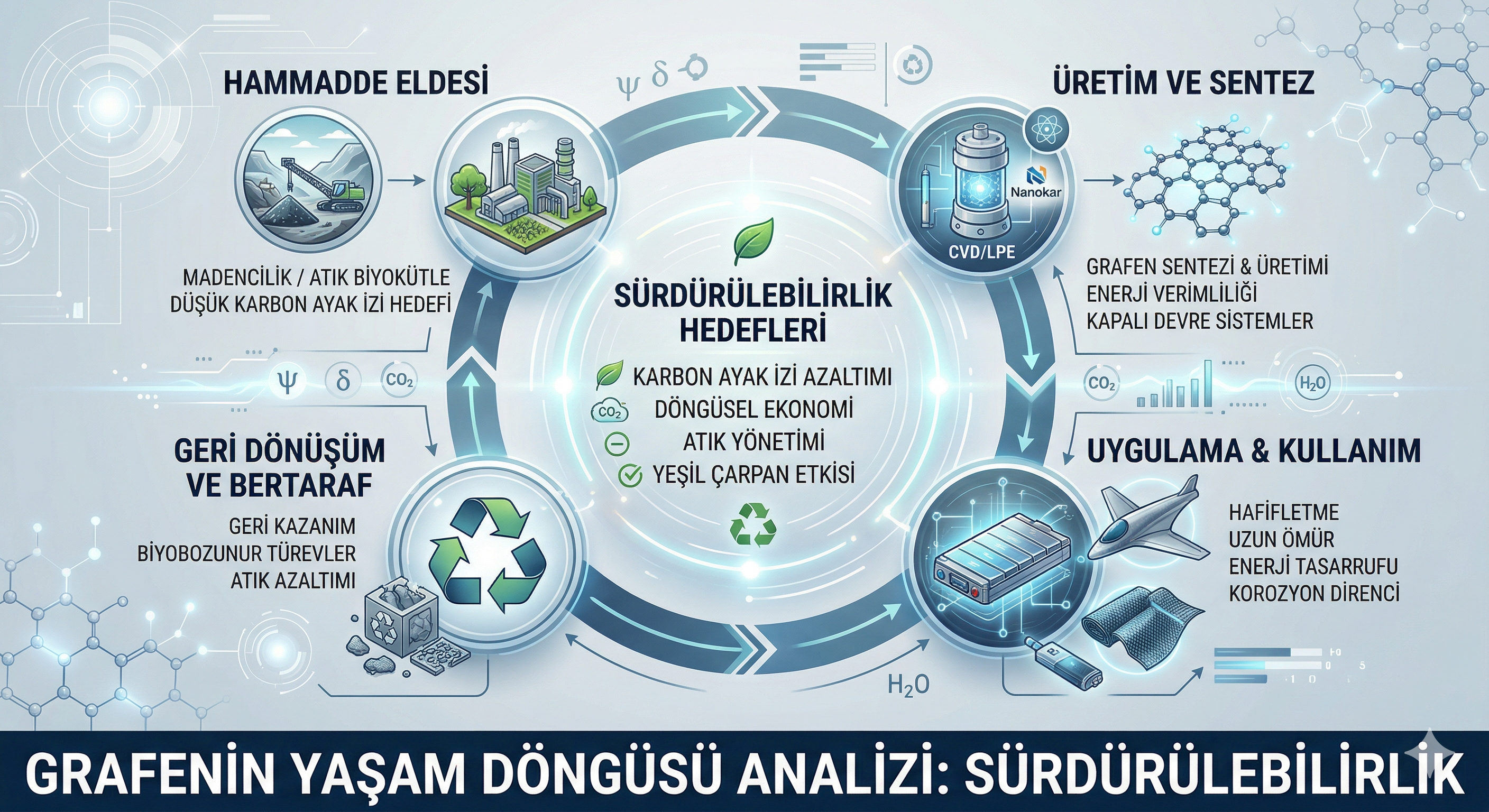 Nanoteknoloji dünyasında heyecan verici bir dönüşüm yaşanıyor. Grafen; dayanıklılığı, hafifliği ve iletkenliğiyle endüstriyi dönüştürürken, bir soru giderek daha fazla önem kazanıyor: Grafen gerçekten sürdürülebilir mi? Bu sorunun cevabı, malzemenin “beşikten mezara” (cradle-to-grave) tüm yolculuğunu inceleyen Yaşam Döngüsü Analizi’nde (LCA) saklı. 1. Hammadde Tedariki: Madenden Laboratuvara Grafenin ana kaynağı olan grafit, doğal bir madendir. LCA’nın ilk […]