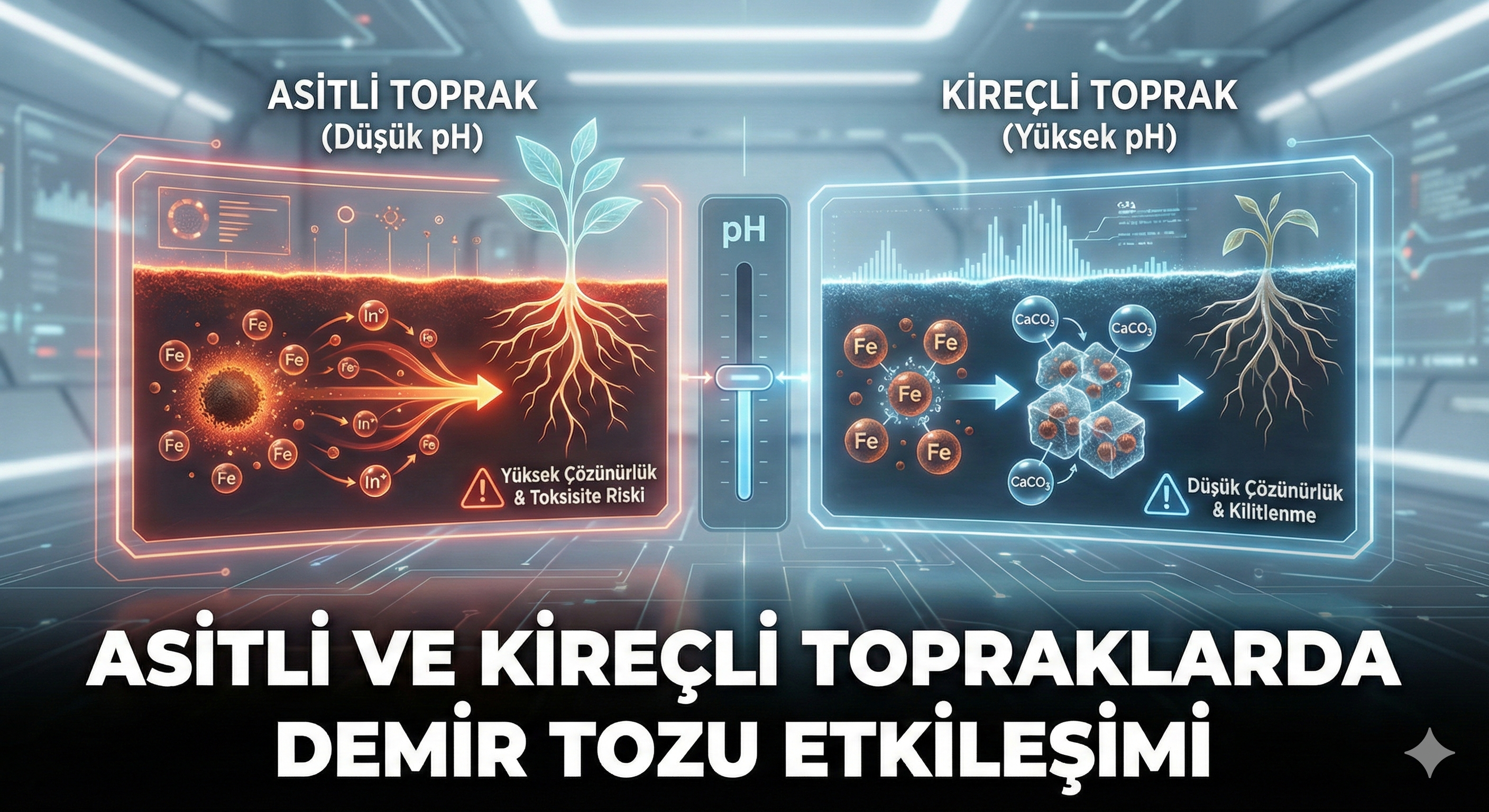 Bitki yetiştiriciliğinde “Ne kadar gübre verdiğiniz” değil, “Toprağın bu gübreyi ne kadar kabul ettiği” önemlidir. Bu kabul sürecini yöneten patron ise toprak pH’ıdır. Özellikle demir (Fe) elementi, toprağın asitli veya kireçli (alkali) olmasına göre tamamen zıt karakterlere bürünür. Kimi toprakta “kilitlenip” kalırken, kimisinde “zehirleyici” seviyeye ulaşabilir. Bu yazımızda, demir tozunun (demir sülfat) asitli ve kireçli […]