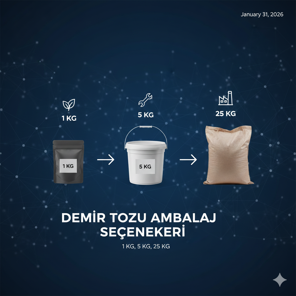 Demir tozu satın alırken en çok karşılaşılan soru, “Hangi miktarda almalıyım?” sorusudur. Laboratuvar deneylerinden ağır sanayi üretimine kadar her ihtiyaca cevap veren ambalaj seçeneklerini inceleyelim. 1. 1 Kg Ambalaj: Hassas İşler ve Deneyler İçin Genellikle Ar-Ge laboratuvarları, okullar ve hobi sanatçıları tarafından tercih edilen bu küçük ambalaj, kullanım kolaylığı sağlar. 2. 5 Kg Ambalaj: Atölyeler […]