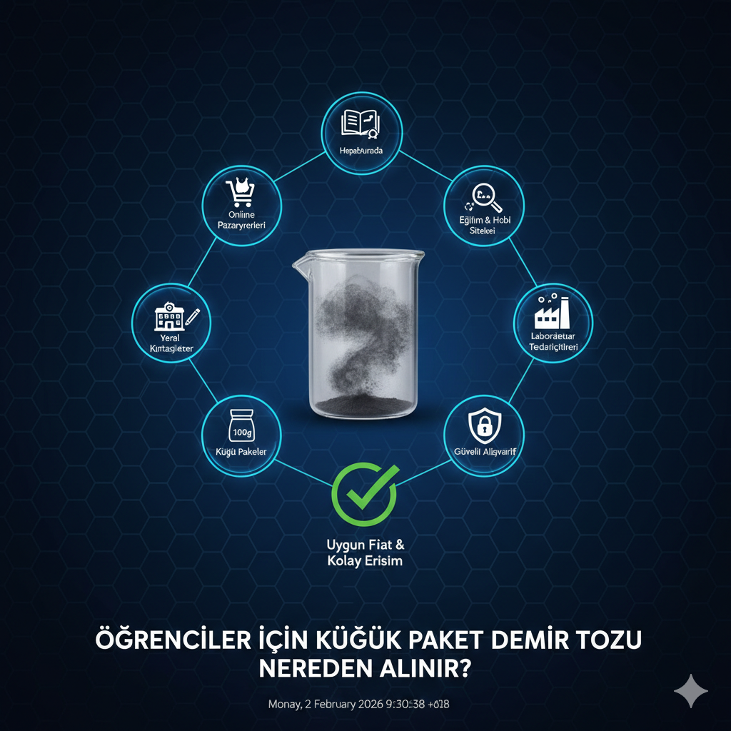 Öğrenciler ve hobi kullanıcıları için endüstriyel boyuttaki (25 kg ve üzeri) paketler hem maliyetli hem de saklaması zordur. Yazınızda 100 gram, 250 gram ve 500 gramlık paketlerin ev ve sınıf ortamı için ideal olduğunu vurgulayın. 2. Satın Alma Kanalları 3. Demir Tozu Seçerken Dikkat Edilmesi Gerekenler 4. Güvenlik Notu (Öğrenciler İçin Önemli) Demir tozunun göze […]