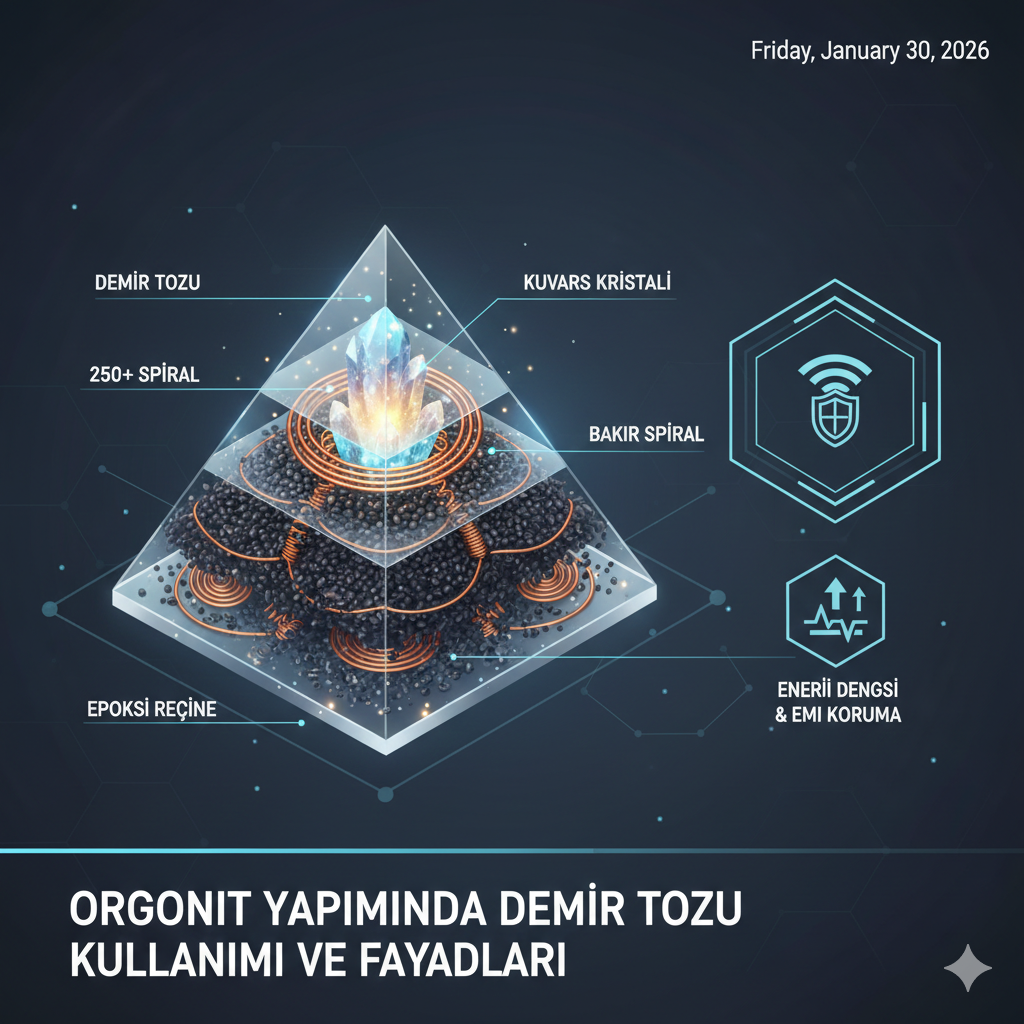 Orgonit, temel olarak organik (reçine) ve inorganik (metal parçacıkları) maddelerin belirli bir oranda birleştirilmesiyle oluşturulan bir enerji dönüştürücüsüdür. Wilhelm Reich’ın çalışmalarına dayanan bu yapıda, metalin türü ve boyutu cihazın “çekim gücünü” belirler. Demir tozu, orgonit içinde en kararlı ve güçlü enerji akışını sağlayan inorganik katmanlardan biridir. 1. Orgonit İçinde Demir Tozunun Rolü Orgonit cihazları, çevredeki […]