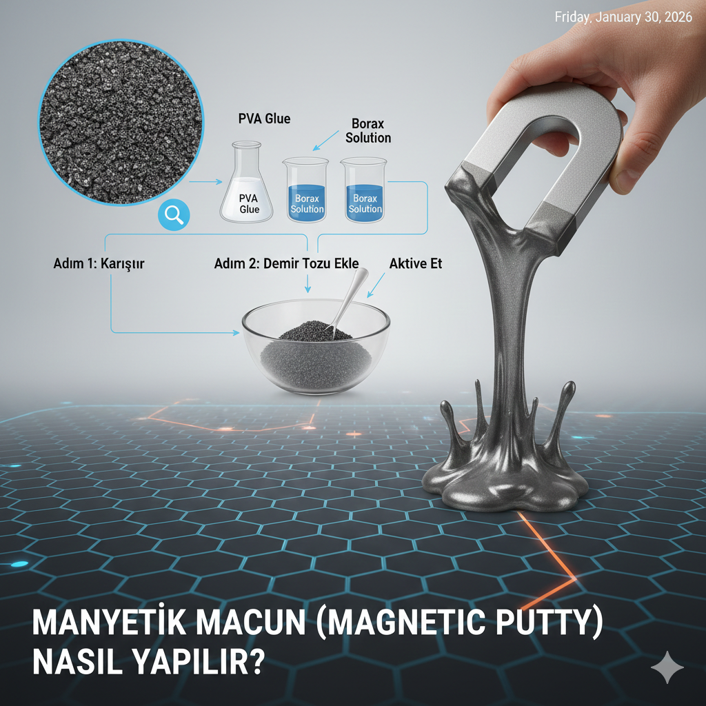 Sıradan bir oyun hamurunun mıknatıs tarafından adeta bir “canlı gibi” çekildiğini görmek hem şaşırtıcı hem de öğreticidir. Kendi manyetik macununuzu evde veya okulda yaparak, manyetizma prensiplerini eğlenceli bir yolla öğrenebilirsiniz. İşte adım adım manyetik macun yapımı! 1. Gerekli Malzemeler Başarılı bir manyetik macun için en kritik bileşen doğru demir tozunu seçmektir. 2. Adım Adım Yapılış […]