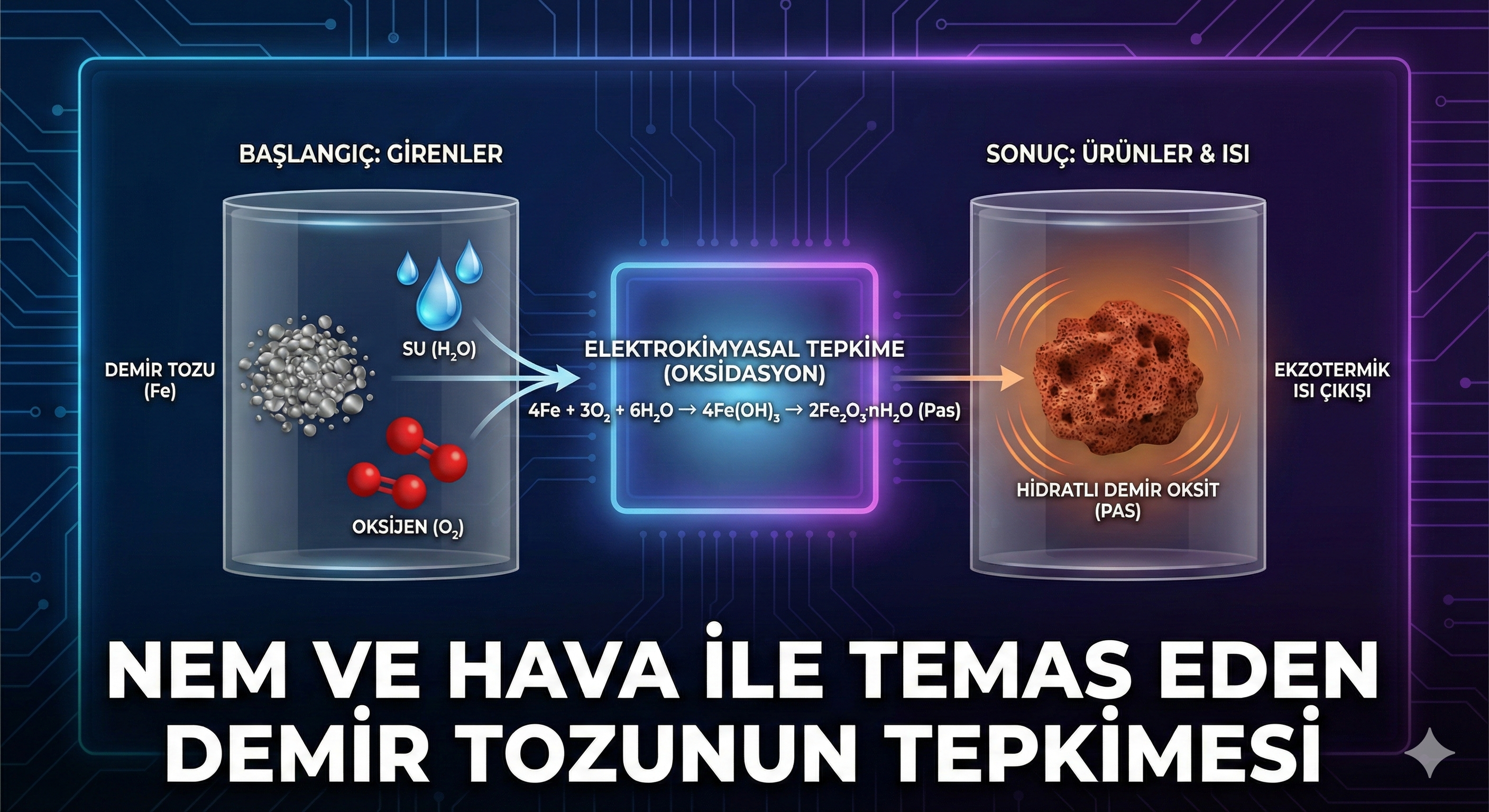 Soğuk bir kış gününde elinizi ısıtan o küçük paketin veya yemeğinizi pişiren alevsiz ısıtıcının içinde aslında sessiz bir kimyasal fırtına kopmaktadır. Bu fırtınanın adı: Ekzotermik Reaksiyon. Enerjinin yoktan var edilemeyeceğini biliyoruz; peki, soğuk bir metal tozu (demir) nasıl oluyor da 80-90 derecelere varan bir ısı kaynağına dönüşüyor? Bu yazımızda, demir tozunun oksidasyon sürecini, termodinamik yasaları […]
